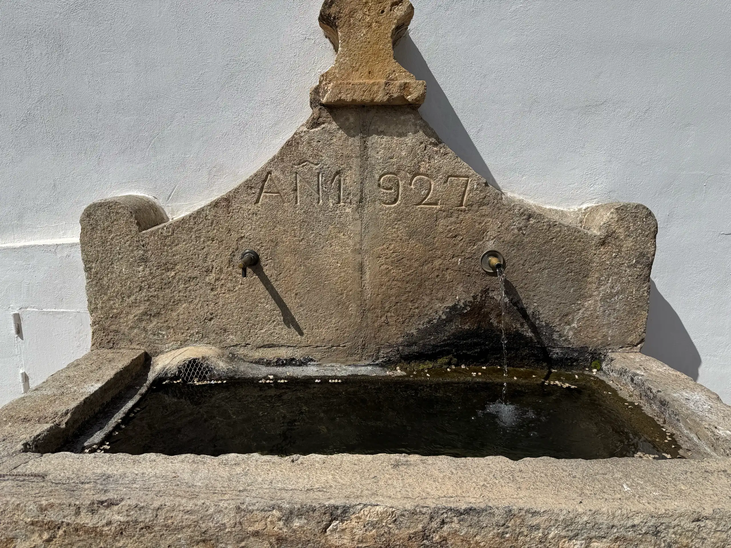 De estilo sobrio y funcional, está formada por un pilón rectangular de piedra y un cuerpo central coronado por un remate en forma de cruz apuntada, en el que se encuentran dos caños de metal por donde brota el agua fresca.