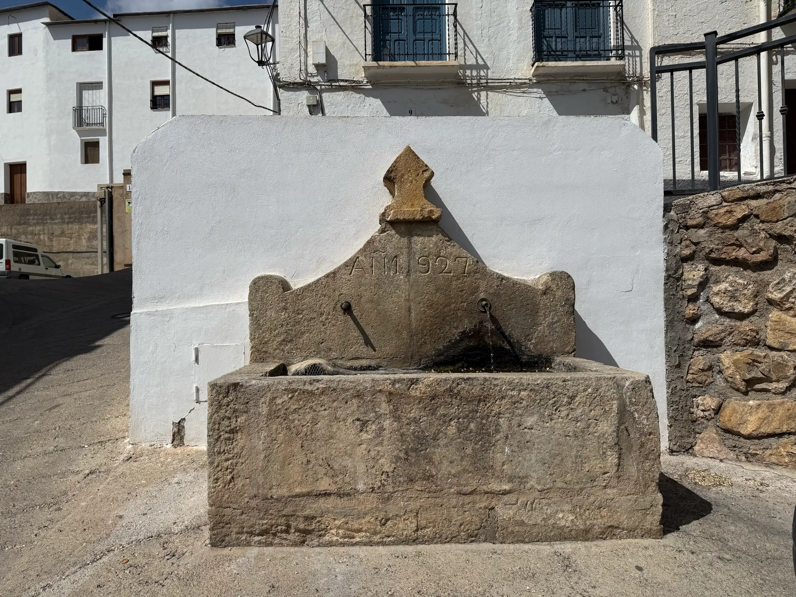 Ubicada en la parte alta del núcleo urbano de Válor, esta fuente de piedra tallada conserva su aspecto original desde 1927, año grabado en su frontal.