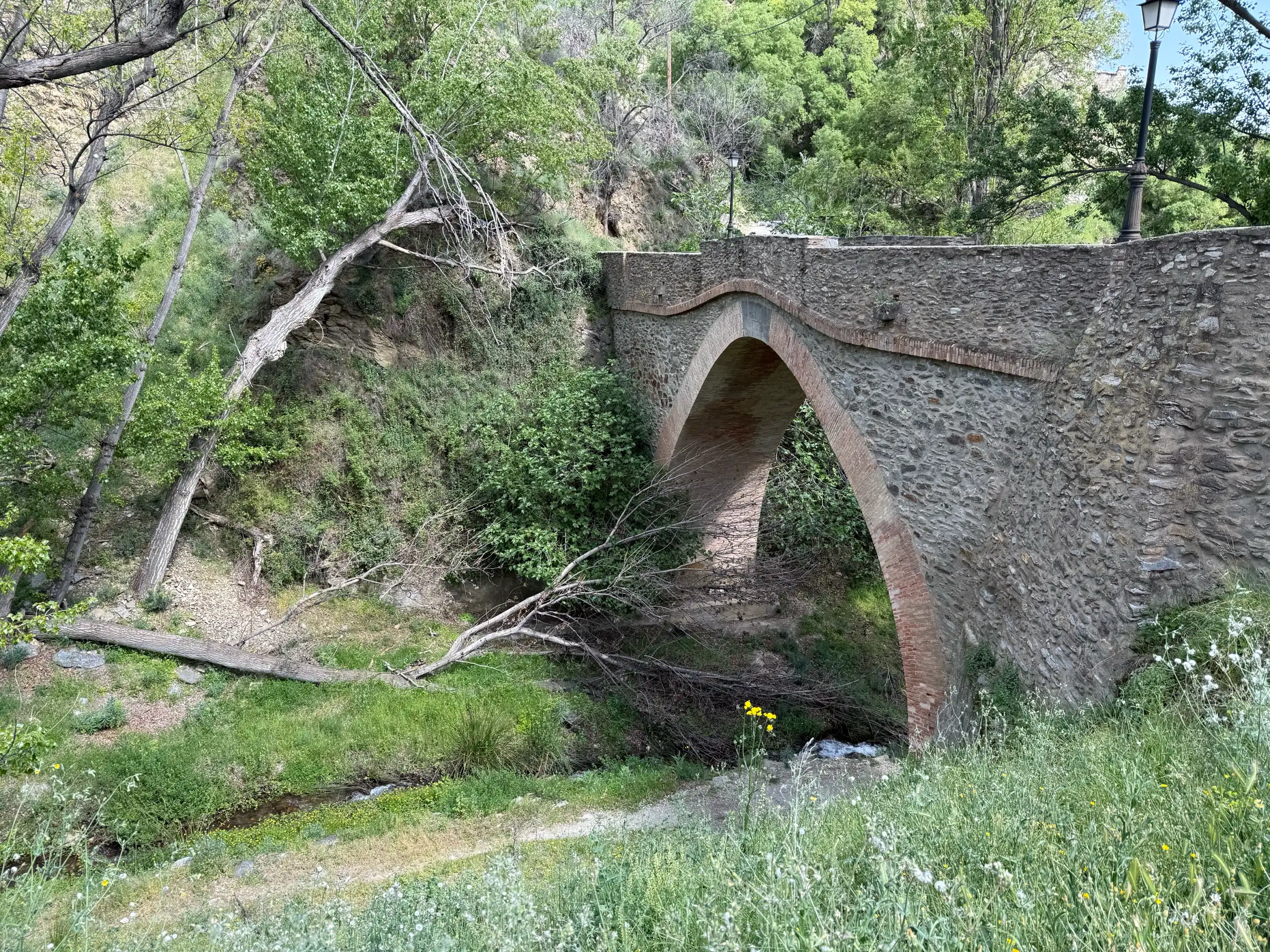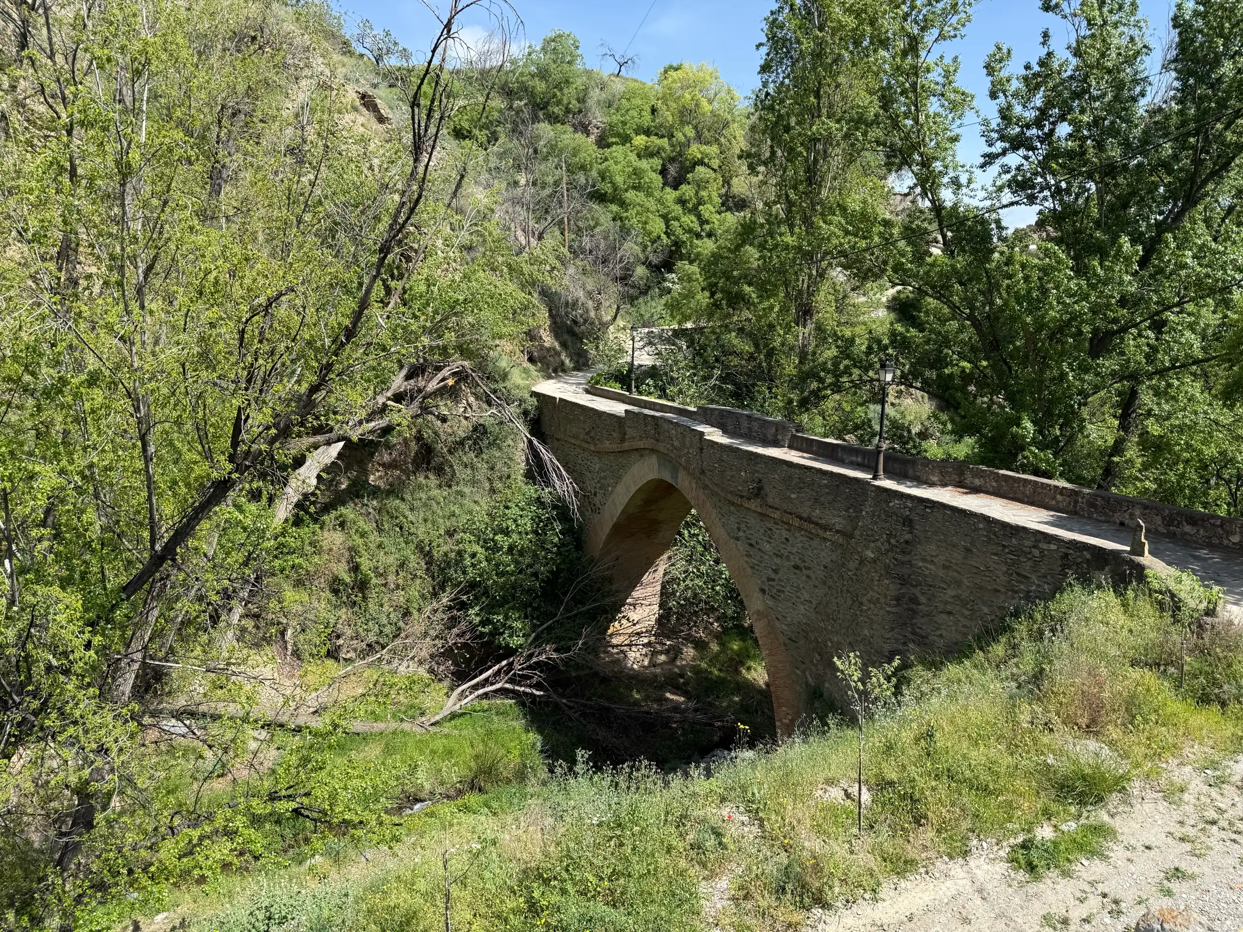 Construido sobre uno de los barrancos que descienden desde las laderas de Sierra Nevada y cruzando el Río Válor, este puente ha servido tradicionalmente como paso entre caminos rurales utilizados por vecinos, pastores y agricultores.