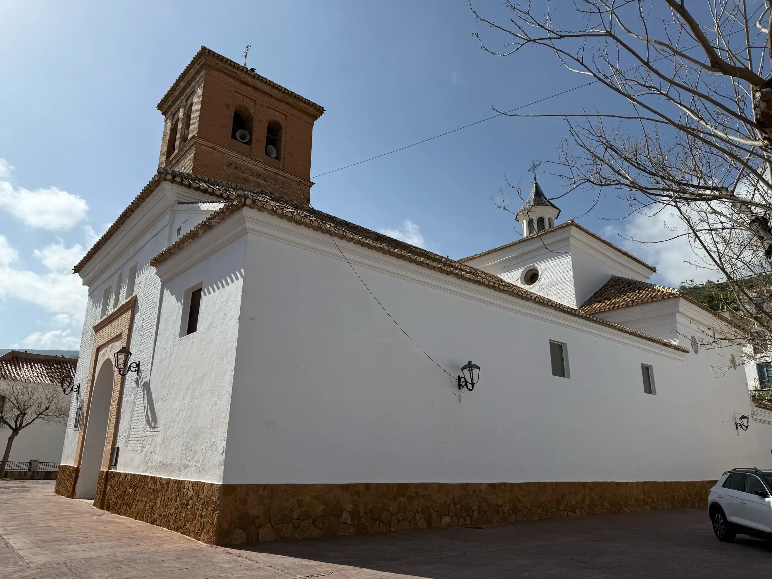 La fuente presenta una estructura tradicional, construida en piedra y encalada, con un pilón que aún conserva el flujo constante del agua que brota de los manantiales de Sierra Nevada.